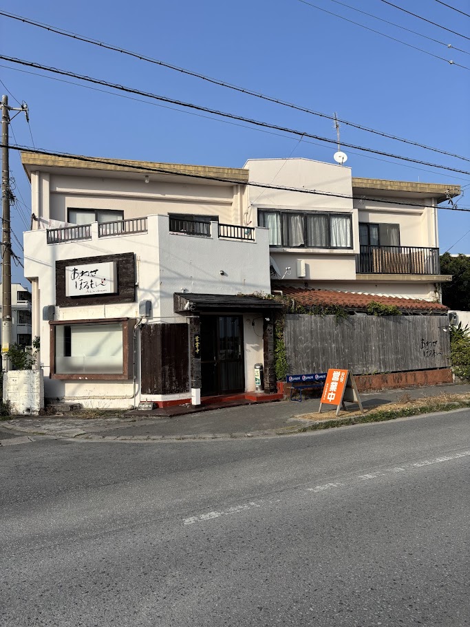あわせほるもんは、僕の中学校の同級生がやっているホルモン屋さん。ここに来るために、那覇市から8時間ぐらい歩いてやって来ました。流石に疲れましたねー