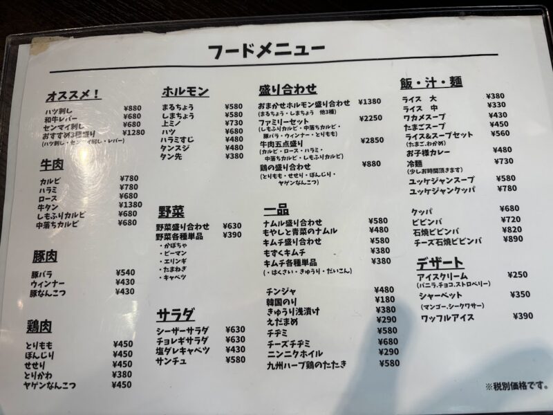 まるちょうとは小腸のこと。しまちょうとは、大腸だとか。どちらも380円でした。柔くて、旨かったです。