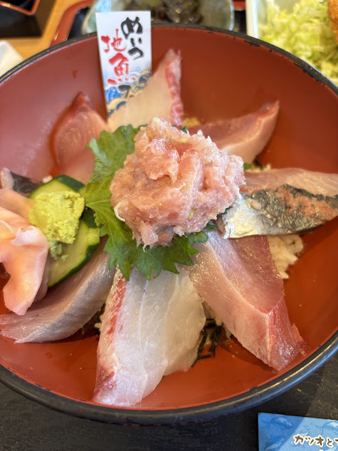 カジキのフライが美味しくて夢中で食べてたら、一番目当ての海鮮丼が後回しになりました。