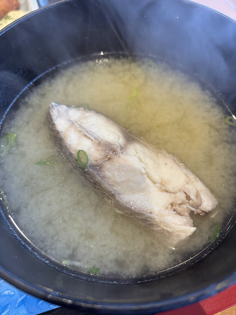味噌汁の中に入っている魚は、ものすごく肉厚で蛋白な味で美味しかったです。