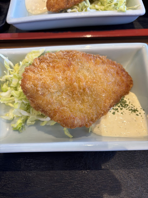 こんなに厚いフライは初めてかも。あつあつで美味しかった。