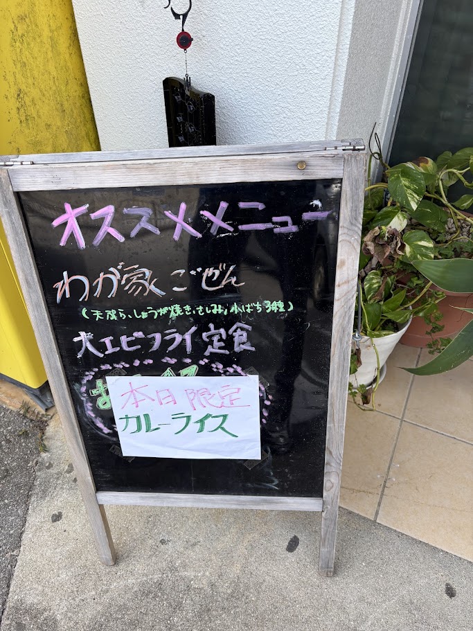 古宇利島から世界遺産の今帰仁城跡を目指して車を走らせていた時。ちょうどお昼前、いい具合にお腹も空いてきたなというタイミングで、道路沿いに「わが家」というお店が目に飛び込んできました。