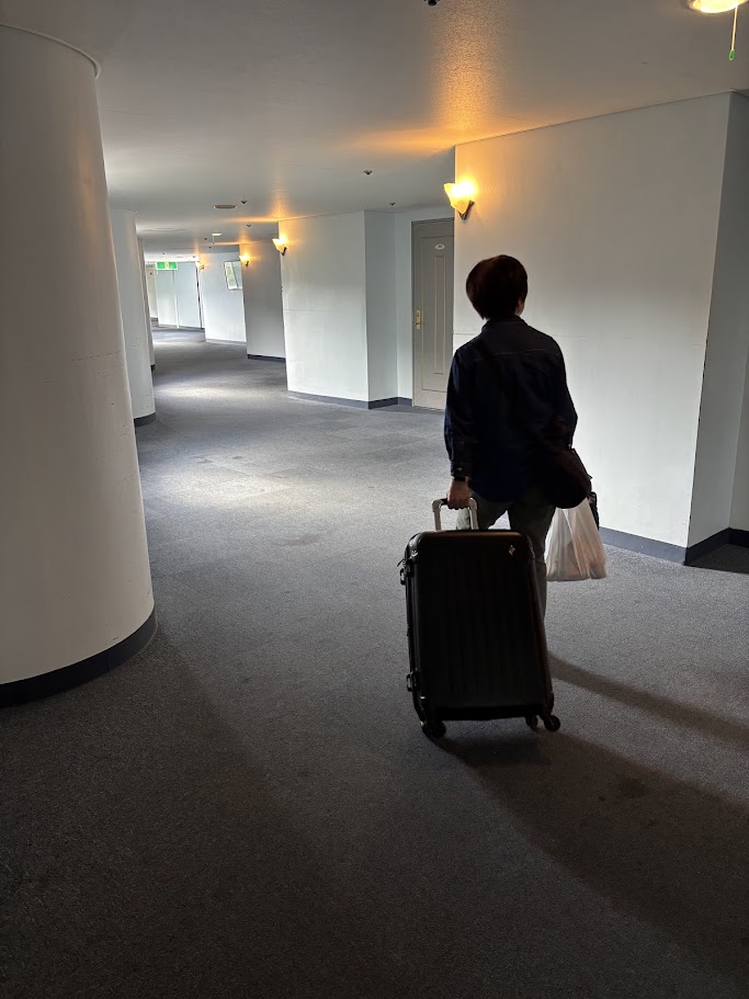 案内されたお部屋は6階。エレベーターを降りて驚いたのが、廊下の形です。あんな風に「ぐにゃぐにゃ」と蛇行している廊下は初めて見ました。