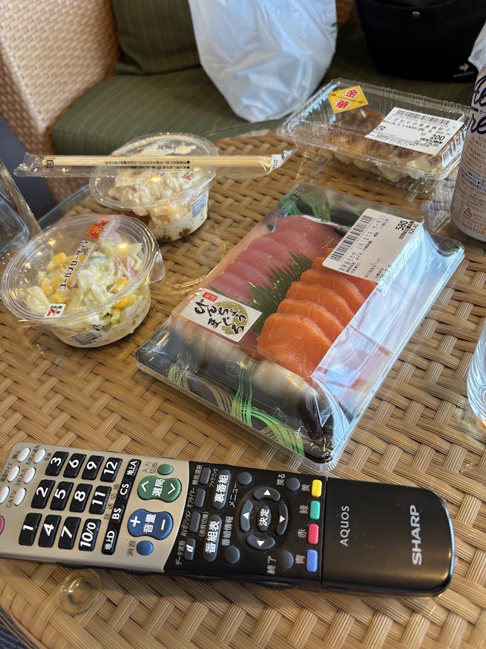 夕飯は、近くの地元のスーパーとセブンイレブンで買い出しをして済ませました。